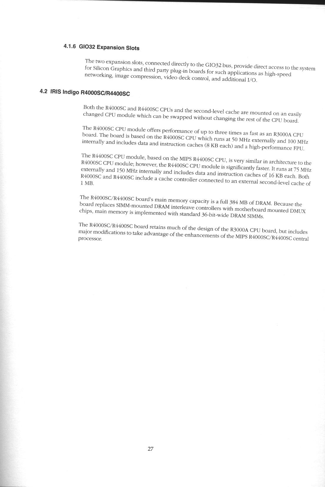 | R4000/R4400 CPU, I/O, Audio and GIO32 subsystems